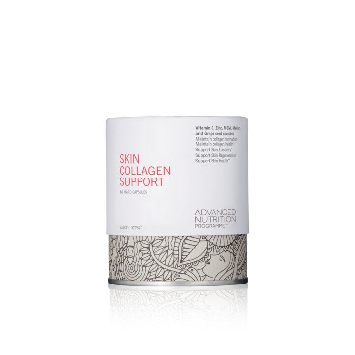 Skin Collagen Support diffuses anti-aging technology throughout the body to activate your skins collagen production for younger-looking skin.