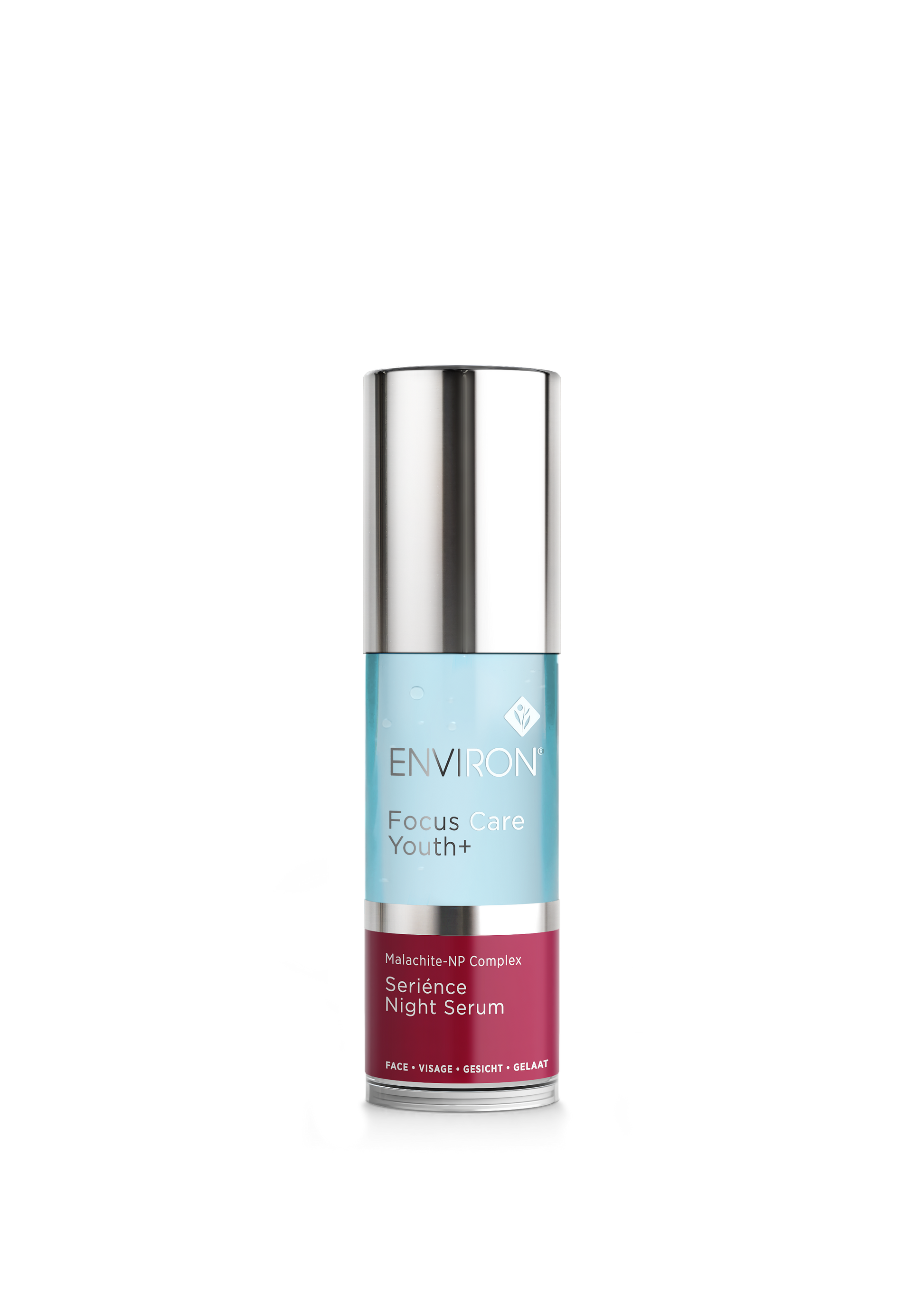 Prolonged stress affects everyone and is scientifically shown to impact the health and wellness of skin, resulting in skin looking dull, aged and fatigued. Environ’s Seriénce™ Night Serum is an overnight booster serum scientifically formulated with an intelligent Malachite-Neuropeptide Complex. The key ingredients are scientifically proven to assist in smoothing the appearance of both expression and vertical lines, improving skin luminosity and radiance, ultimately helping to protect the skin against present and future oxidative stress-induced damage.